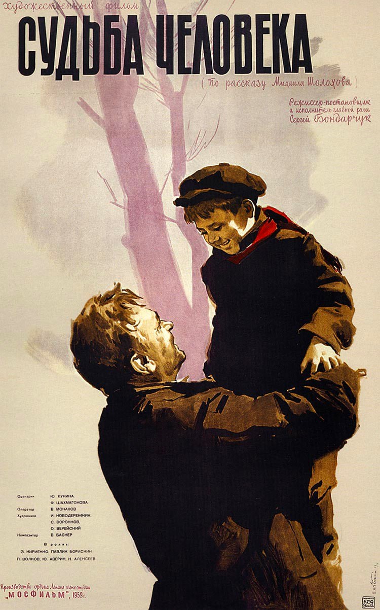 پوستر فیلم «سرنوشت یک انسان» به کارگردانی سرگئی بوندارچوک، یکی از ماندگارترین و تاثیرگذارترین تصاویر در تاریخ سینمای جنگ است. این پوستر تنها یک اثر تبلیغاتی نیست، بلکه به شکلی فشرده و نمادین، تمام اساس داستان کوتاه میخائیل شولوخوف را انتقال میدهد.