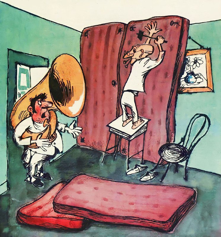 همسایه، لطفا دست از کوبیدن دیوار بردار، داری حواسم را پرت میکنی..این اثر یک پوستر تبلیغاتی معروف شوروی است که با سبک متمایز و طنز خود شناخته میشود. مفهوم آن تشویق به رعایت سکوت و احترام به آرامش دیگران در آپارتمانهای مشترک است.